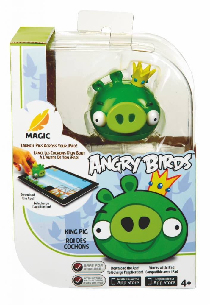 Beleef interactief speelplezier met de Ipad Angry Birds. Download de App op je Ipad. Plaats de King Pig op je iPad om vier verschillende standen te activeren voor nieuwe geluiden, personages en achtergronden. In King Pig veranderen de varkens in eieren en de vogels in varkens.