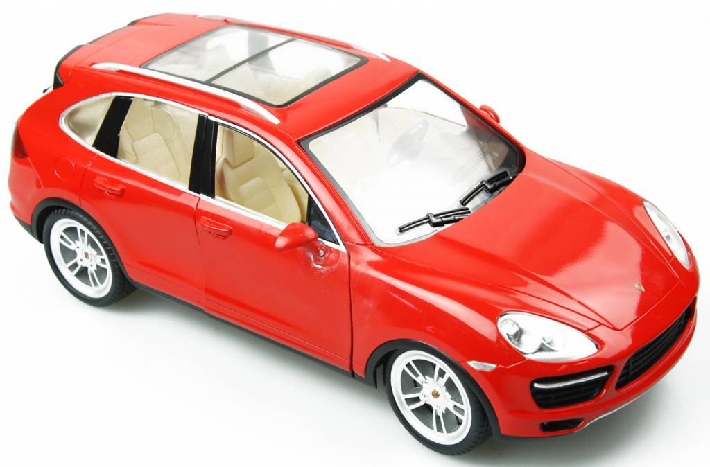 Radiografisch bestuurbare auto van Auldey. Deze Porsche Cayenne Turbo S heeft een schaal van 1 op 16.
