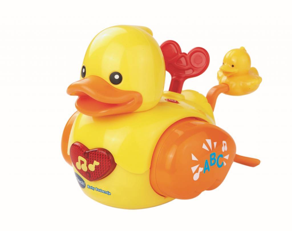 Wanneer je kindje op de ABC-toets en het knipperende harttoets drukt, hoor je grappige geluiden, vrolijke zinnetjes, gezongen liedjes en melodietjes. Draai de sleutel en zie de eendjes zwemmen.