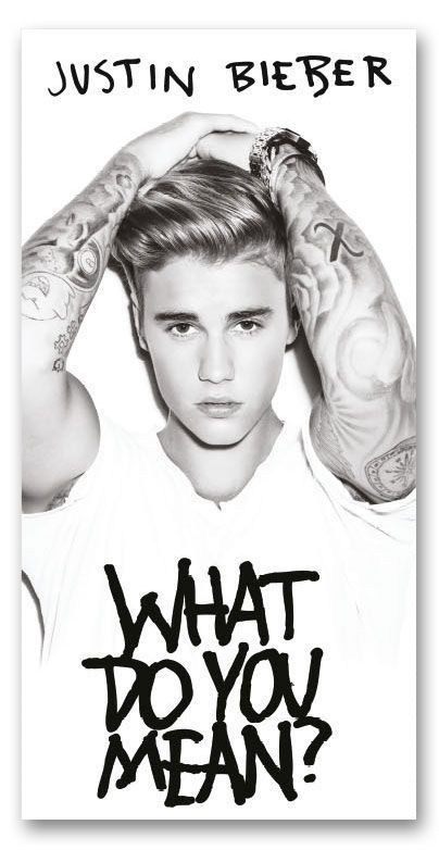 Badlaken van Justin Bieber. Dit badlaken is super handig als je naar het strand of zwembad gaat. Op het badlaken is uiteraard Justin Bieber te zien met daaronder de tekst van zijn grote hit namelijk what do you mean. Geschikt voor iedere Justin Bieber-fan.